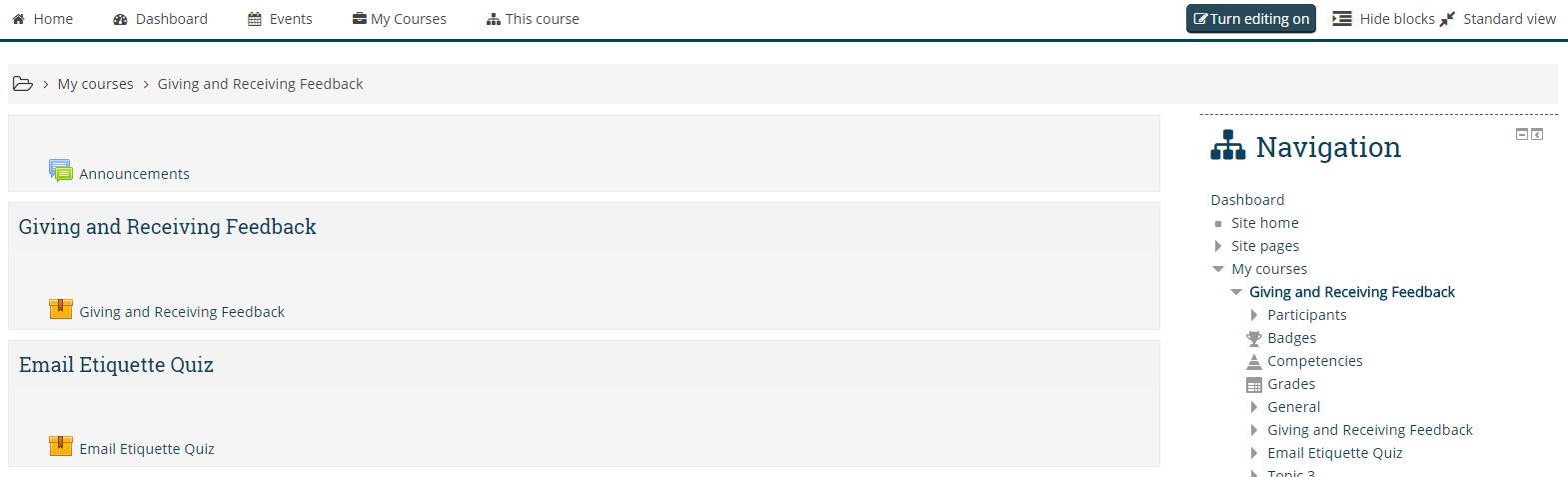 3. Once you click on login the home page displays, containing a list of links to all your Moodle courses.
