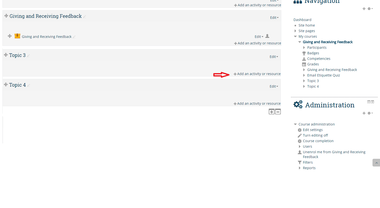 Go to the topic where you have to add label and select “Add activity or resource” option